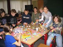 På billedet har nogle af eleverne i 5a travlt med at klippe guirlander, men der blev også rullet havregrynskugler, lavet mosbamser og gjort forberedelser til det forestående Luciaoptog. Forældre og bedsteforældre gav en hjælpende hånd med til juleklippet.