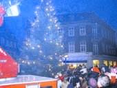 Og igen i år var det noget, der trak rigtig mange mennesker til Torvet i Grenaa. Ikke mindst mange små mennesker, for hvem et sådant arrangement er en kilde til ganske stor glæde og fornøjelse. Det er jo ikke hver dag man oplever, at selveste julemanden kommer anstigende med en brandbil, og ad hvilken han tænder selve det store juletræ på Torvet foran Det Gamle Rådhus - fra toppen af stigen på brandbilen.