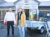 På billedet overrækker Morten Lavrsen fra Bygma Steen Præst Trælast i Grenaa præmien til Lejf Eskildsen i form af en Brenderup-trailer til en værdi af 5.165 kroner.