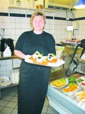Og som det fremgår af billedet, så har hun altid nogle delikate lækkerier at byde på. Se annonce fra Byens Dinner andetsteds på siderne.