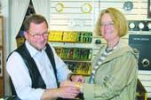 For at deltage i lodtrækningen om den flotte præmie skulle man svare rigtigt på spørgsmålet om, hvor længe urmager- og smykkeforretningen Mouritsens Eftf. har ligget på adressen Lillegade 5 i Grenaa. Der var tre svarmuligheder, og det rigtige svar var 97 år. Anna Henneberg, Lundenvej 12 i Glesborg, var én af de mange, der afleverede et konkurrence-bidrag, og det kunne godt betale sig, for hun blev nemlig udtrukket som den heldige vinder af konkurrencen. Dermed er hun et Skagens-ur rigere. På billedet får hun det flotte ur overrakt af Bent Bjerg Madsen.