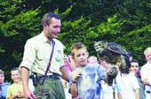 Dagens program er fyldt med spændende aktiviteter lige fra den imponerende falkoneropvisning (billedet) til fortællingerne om de frække halvaber Katta Lemurerne på abeøerne. Ved siden af gepardernes anlæg ses de smukke vildhunde blive fodret og som prikken over i’et bliver gepardernes mad sendt af sted med 70 km i timen, så publikum får den store oplevelse at se det smukke dyr i fuld udstrækning. Turene med Land Rover Safarien kører hele dagen og kamelridningen er ligeledes i gang. Så der skulle være nok at se på og få en hel dag til at gå med for både store og små.
